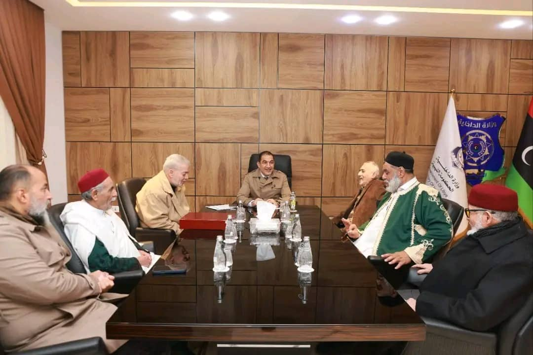استقبل وزير الداخلية اللواء "عصام أبوزريبة" وفد مشايخ مدينة مصراتة بالمنطقة الشرقية، في مكتبه بديوان الوزارة