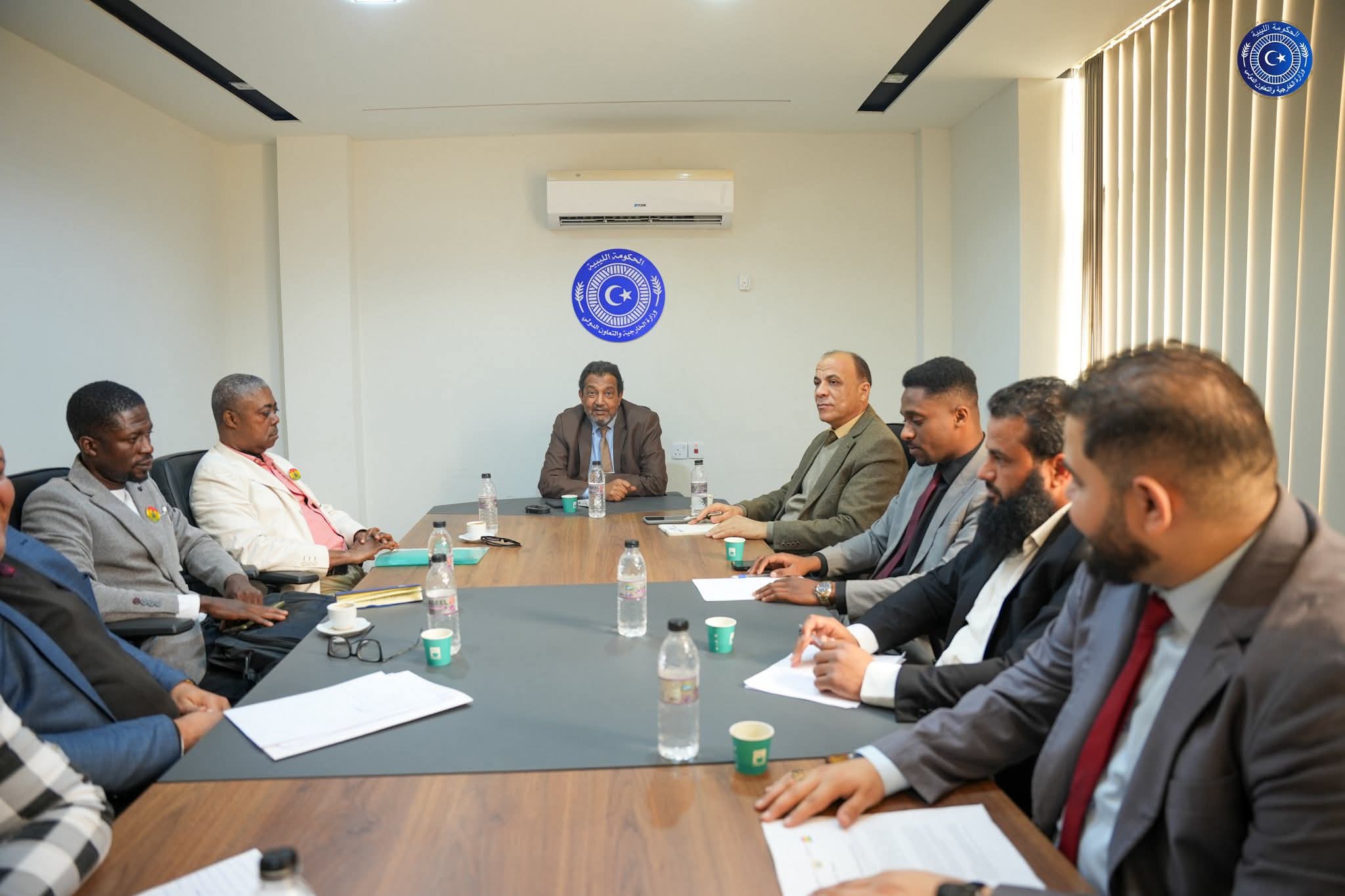 في إطار التوجه الاستراتيجي للدولة الليبية نحو تعزيز عمقها الإفريقي وترسيخ دورها كجسر للتواصل والتعاون بين شعوب القارة، وتنفيذا لتعليمات وزير الخارجية عبد الهادي الحويج، بشأن متابعة أوضاع الجاليات الإفريقية والاهتمام بقضاياها، عقد بمقر ديوان الوزارة بمدينة بنغازي، اجتماع خصص لبحث أوضاع الجالية الغانية والتحديات التي تواجه أفرادها وشارك في الاجتماع سعادة السفير عبد السلام الرقيعي، مدير إدارة الشؤون الإفريقية، وائل مخلوف، مدير إدارة الشؤون القنصلية المكلّف، والمستشار محمد العرفي، إلى جانب رئيس الجالية الغانية فرانسيس أدجي، والسيد إريك كوجو، المعتمد من سفارة جمهورية غانا، وعدد من أعضاء الجالية، إلى جانب ممثلين عن الجهات المختصة بالوزارةووأكد المشاركون خلال الاجتماع أن الاهتمام بأوضاع الجاليات الإفريقية يندرج ضمن رؤية ليبيا لتعزيز التعاون جنوب–جنوب، وترسيخ مبادئ التضامن الإفريقي، بما يواكب العلاقات التاريخية والاجتماعية التي تربط ليبيا بدول القارة