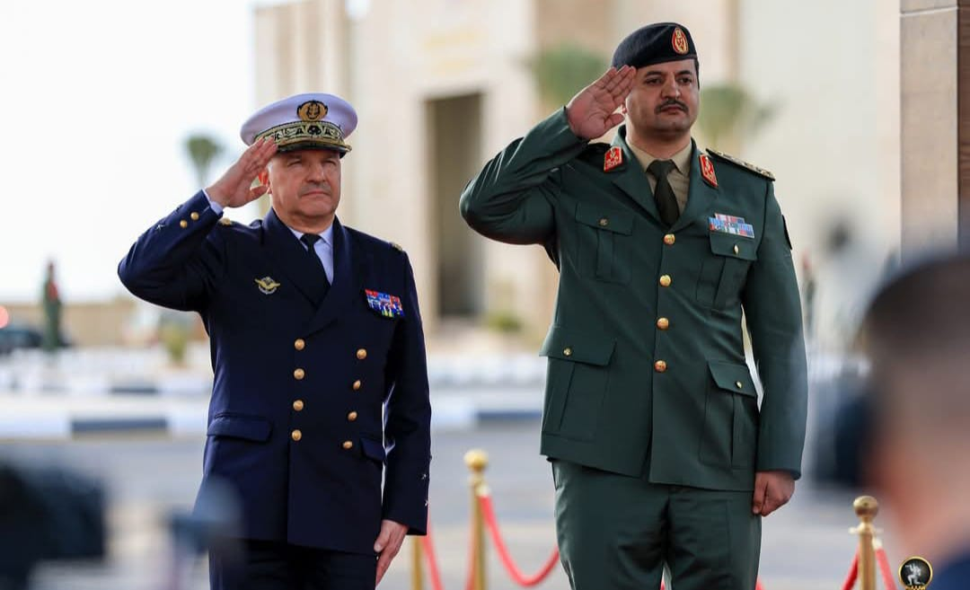 استقبل رئيس الأركان العامة للقوات المسلحة فريق أول ركن خالد حفتر، نائب رئيس أركان الجيوش الفرنسية وقائد القوات الفرنسية في البحر الأبيض المتوسط الأدميرال كريستوف لوكاس، المشارك في أعمال المؤتمر الأمني الاستراتيجي الأول لرؤساء أركان دول حوض المتوسط وجنوب الصحراء