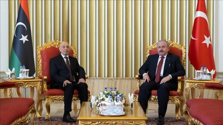 وصل رئيس مجلس النواب المستشار عقيلة صالح يوم الاثنين ، إلى العاصمة التركية أنقرة ، وكان في استقباله رئيس مجموعة الصداقة الليبية التركية بمجلس الأمة التركي احمد يلدز رفقة لفيف حكومي رفيع المستوى وخلال الزيارة الرسمية عقد رئيس المجلس اجتماعاً موسعاً برئيس البرلمان التركي مصطفى شنطوب في مقر البرلمان التركي، حيث تم بحث العلاقات الثنائية وتوطيد العلاقات البرلمانية بين البلدين من جانبه أشار المستشار صالح إلى وجود روابط تاريخية بين الشعبين التركي والليبي، وأنه من الواجب ترك جميع قنوات الحوار مفتوحة من أجل إحلال الاستقرار والسلام في ليبيا ونوه رئيس مجلس النواب أيضاً أن أولوية الحكومة الجديدة التي تشكلت في ليبيا وحصلت على ثقة مجلس النواب، هي ضمان إجراء الانتخابات البرلمانية والرئاسية في البلاد ، كما وأشار إلى أهمية دعم تركيا للجهود المبذولة لإحلال السلام والاستقرار في ليبيا كما أوضح شنطوب أن تعزيز العلاقات بين برلماني البلدين سينعكس إيجابياً على باقي المجالات والقطاعات ، ذاكرا ان تأسيس مجموعة الصداقة التركية الليبية داخل البرلمان التركي، بهدف تطوير العلاقات مع ليبيا وأن الحفاظ على وحدة الأراضي الليبية يستحوذ على أهمية بالغة بالنسبة لتركيا