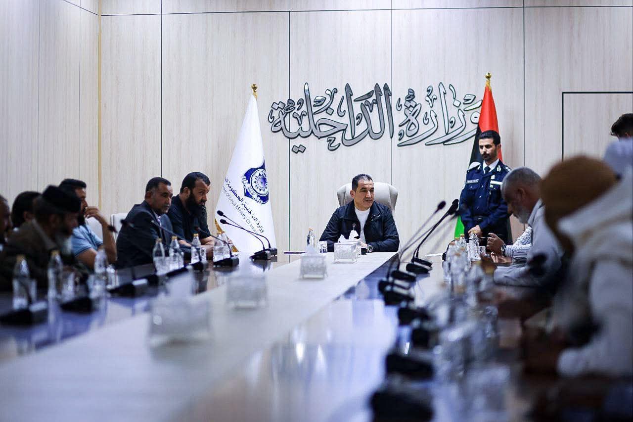 عقد وزير الداخلية اللواء “عصام أبوزريبة”، اجتماعًا موسعًا ضمّ نائب رئيس المجلس الاجتماعي للمنطقة الغربية “حسين الحمروني”، وعددًا من مشايخ مدن العجيلات، رقدالين، الجميل، أبوكماش، زلطن، العسة، ورأس جدير