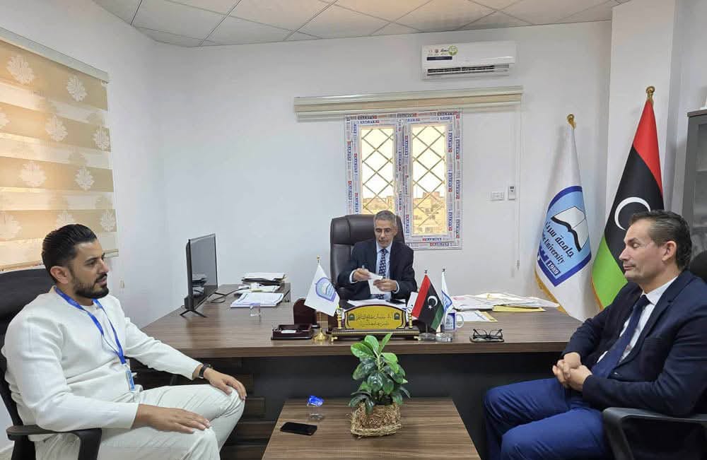 رئيس جامعة سرت بحث مع مسؤول التوعية والتواصل بمكتب وكالة الأمم المتحدة للهجرة، سبل تعزيز التعاون بين الجانبين في القضايا المتعلقة بملف الهجرة غير الشرعية