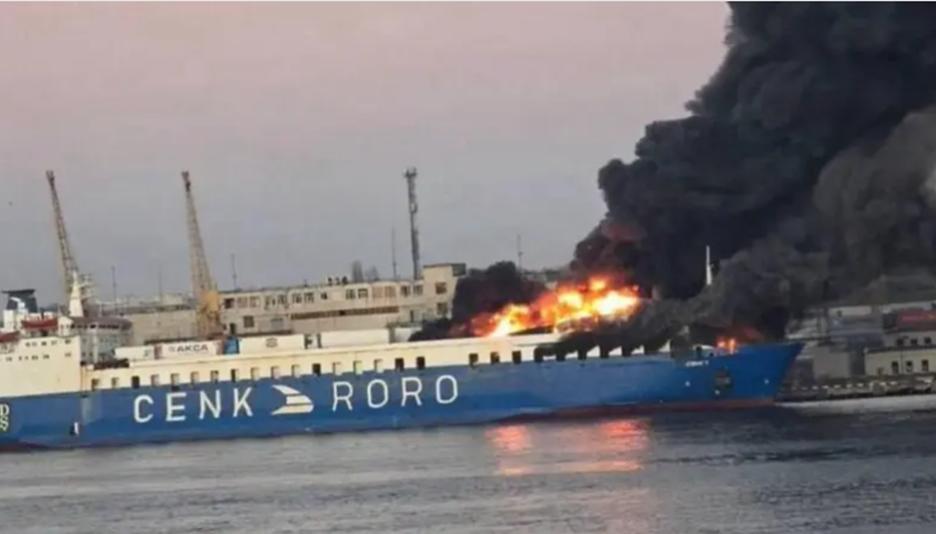 اشتعلت النيران في سفينة مدنية بعد هجوم روسي على أوديسا، جنوب أوكرانيا، أمس الجمعة ورصدت صور حريق السفينة المملوكة لشركة تركية وأفاد إعلام أوكراني بتصاعد أعمدة الدخان في أوديسا بعد دوي انفجار، كما انطلقت صفارات إنذار في أوديسا وخاركيف وسومي وتشيرنهيف من جراء الهجمات الروسية.
