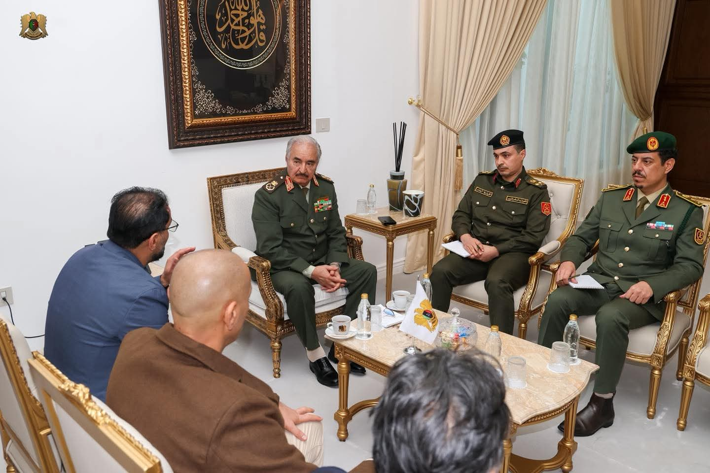 القائد العام للقوات المسلحة، المشير أركان حرب خليفة أبوالقاسم حفتر، يعقد اجتماعًا مع رئيس الحكومة الليبية، الدكتور أسامة حماد ورئيس جهاز الأمن الداخلي، الفريق أسامة الدرسي ونائب محافظ مصرف ليبيا المركزي، مرعي البرعصي ووكيل وزارة الداخلية، اللواء فرج قعيم وذلك في مكتبه بمقر القيادة العامة بنغازي وشهد الاجتماع مناقشة أزمة السيولة وأزمة الوقود التي تمر بها البلاد، واستعراض الإجراءات الممكنة لمعالجتها، إضافة إلى بحث آليات التنسيق بين الجهات المعنية لضمان استقرار الوضع المالي والخدمي وتوفير الاحتياجات الأساسية للمواطنين وأكد القائد العام أن قوت المواطن يمثل خطًا أحمر لا يجوز المساس به، مشددًا على ضرورة معرفة الأسباب الحقيقية وراء أزمتي السيولة والوقود، ووضع حل عاجل لها لضمان حماية مصالح المواطنين