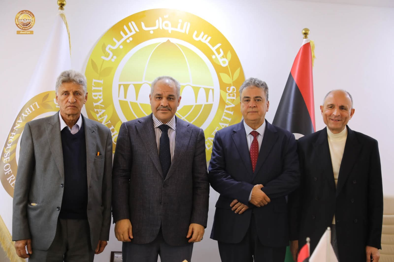 عقدت لجنة التخطيط والمالية والموازنة العامة بمجلس النواب برئاسة رئيس اللجنة “د. عمر تنتوش و بحضور مقرر اللجنة عامر عمران وأعضاء اللجنة سالم قنان ، عبدالوهاب زولية ، فهمي التواتي ، الصادق الكحيلي، خليفة الدغاري، عبدالمنعم بالكور اجتماعاً مع محافظ مصرف ليبيا المركزي ناجي عيسى رفقة مديري الإدارات بالمصرف ، حيث ناقش الاجتماع الذي عُقد يوم الثلاثاء الماضي بمقر فرع ديوان مجلس النواب في مدينة طرابلس الترتيبات المالية لسنة 2026 .م فيما يتعلق بقانون الميزانية العامة للدولة و الحد من التوسع في الإنفاق العام و الميزانية الاستيرادية و كذلك تحسين الإيرادات الممولة للخزينة العامة للدولة