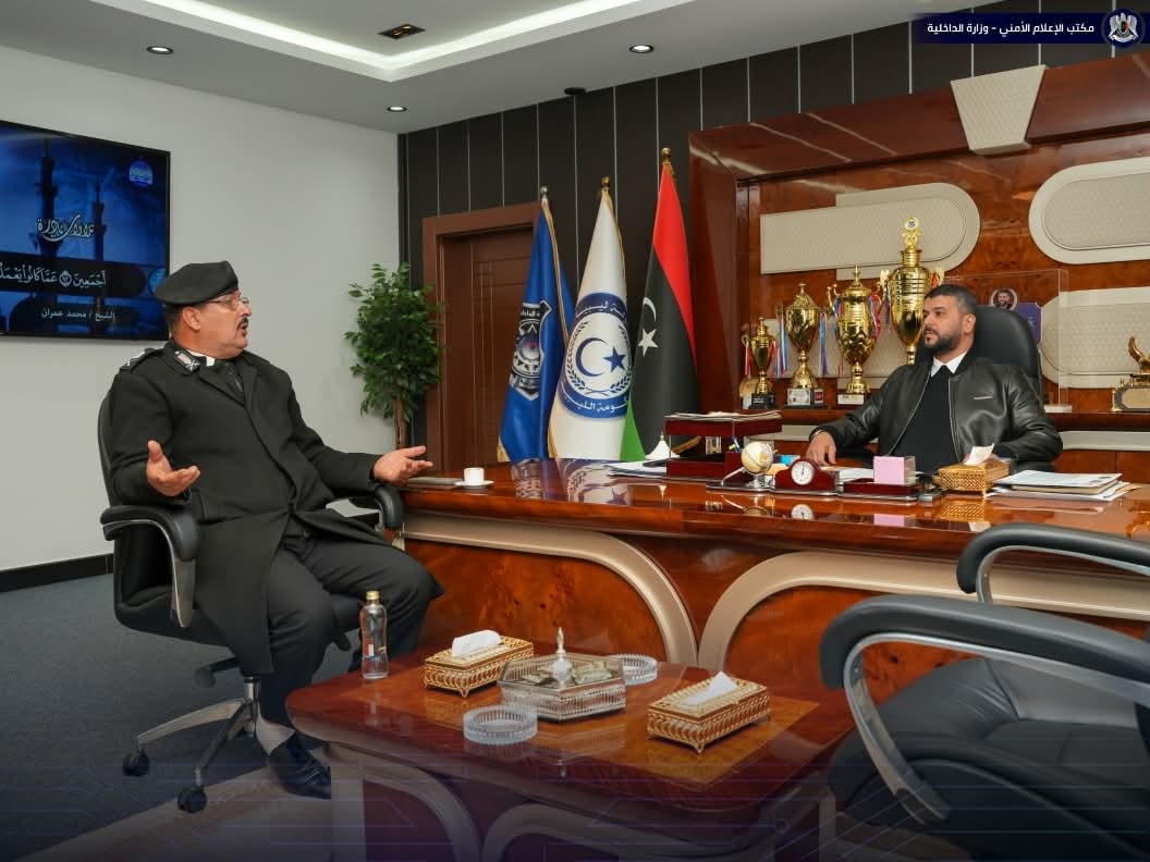 عقد وكيل وزارة الداخلية بالحكومة الليبية اللواء فرج اقعيم، اجتماعًا مع مدير مُديرية أمن الجبل الأخضر لواء منصور الجديد، بمقرّ ديوان الوكيل في مدينة بنغازي اِستمع الوكيل لشروحاتٍ مُفصّلة حول وضع العمل الأمني بمُختلف تفاصيله داخل نطاق اِختصاص المديرية، داعيًا لاِستمرار الجهود القائمة التي اِنعكست بشكلٍ إيجابي على الشارع العام بالمنطقة من جانبه، أعرب مدير أمن الجبل الأخضر عن تقديره للدعم المُتواصل مِن قِبل الوزارة، ووقوفها لصفّ مُنتسبيها بكافة المُكوّنات ومديريات الأمن والأجهزة الأمنية العاملة في ربوع البلاد، وجهودها في مُعالجة وحلحلة أكبر قدرٍ ممكن من المشاكل والعراقيل