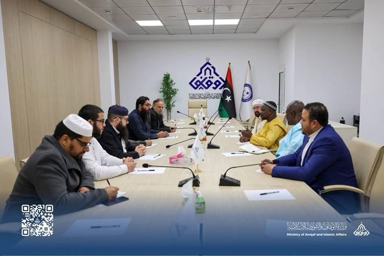 شهد مقر وزارة الأوقاف والشؤون الإسلامية في مدينة بنغازي لقاء رسميا جمع مسؤولين من وزارتي الأوقاف والخارجية الليبية مع المفوض السامي للحج بجمهورية غينيا بيساو الدكتور أنفالي كوتي والوفد المرافق له حيث جرى بحث آفاق التعاون المشترك وتعزيز الروابط التاريخية بين البلدين خاصة في الجانبين الديني والتعليمي وتم الاتفاق على استقبال طلبة من غينيا بيساو للدراسة في كلية الدراسات الإسلامية وإرسال مصاحف وكتب دينية وإيفاد أئمة لإحياء صلاة التراويح بما يسهم في ترسيخ العلاقات الثنائية وتفعيل التنسيق بين الجانبين.