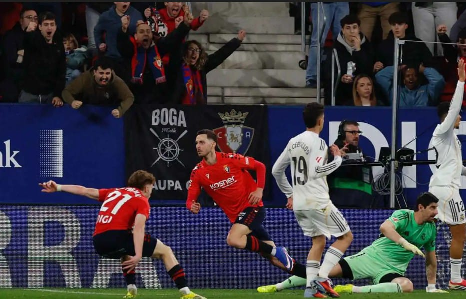 ورفع أوساسونا بذلك رصيده إلى 33 نقطة في المركز التاسع بينما تجمد رصيد ريال مدريد المتصدر عند 60 نقطة