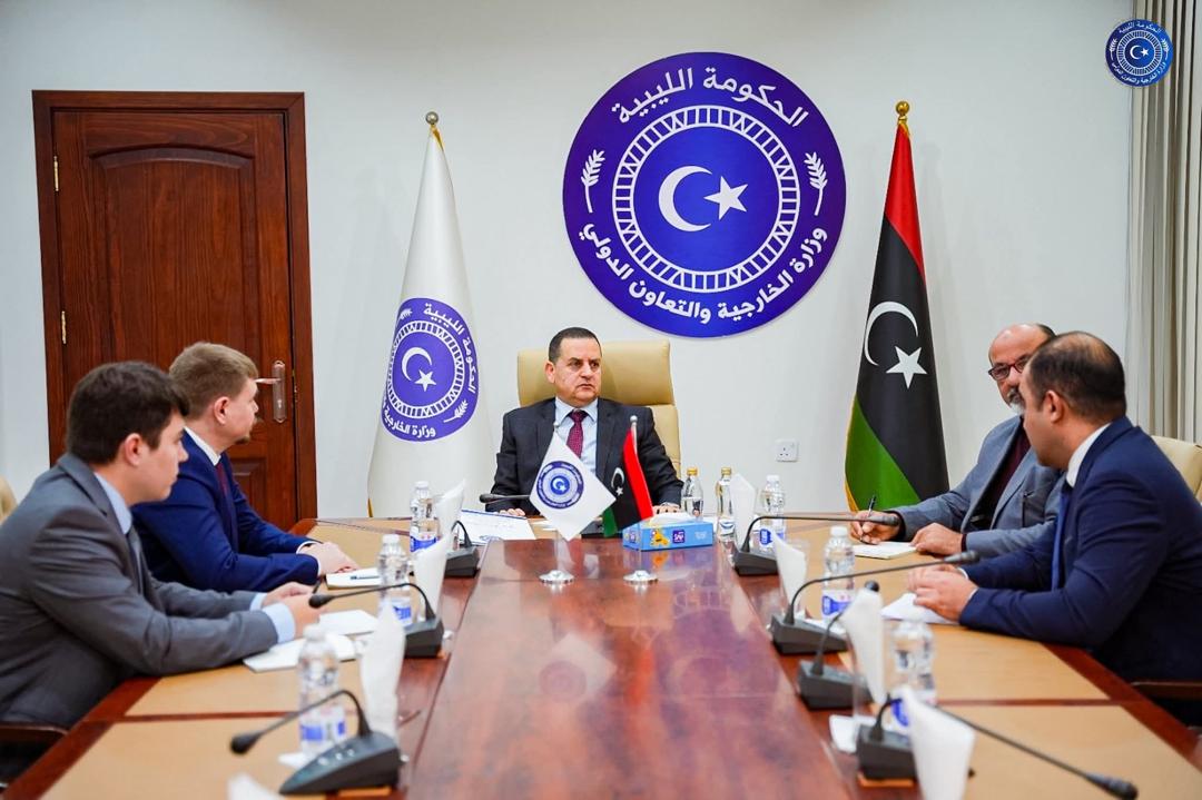 ناقش وزير الخارجية والتعاون الدولي، عبد الهادي الحويج، مع وفد روسي برئاسة المبعوث المكلف بمتابعة افتتاح القنصلية العامة والبيت الروسي، الترتيبات التنظيمية والإجرائية لافتتاح القنصلية والبيت الروسي في مدينة بنغازي، في إطار تعزيز التعاون الثنائي بين ليبيا وروسيا إذ تناول الاجتماع سُبل تعزيز التمثيل الدبلوماسي وتيسير الخدمات القنصلية، بالإضافةِ إلى التعاون الثقافي والعلمي بين البلدين، ومُبادرات مشتركة أبرزها مقترح إنشاء بيت ليبي في موسكو لتعزيز التواصل الثقافي والتبادل المعرفي كما بحث الطرفان تطوير التعاون الاقتصادي في القطاعات ذات الأولوية، وتعزيز الشراكة التعليمية والتجارية، واستكشاف فرص استثمارية جديدة بما يدعم المصالح المشتركة وأكد الوزير حرص ليبيا على توطيد علاقاتها مع روسيا الاتحادية، وتعزيز أطر التعاون الثنائي، بما يُسهم في دعم جهود التنمية والاستقرار، فيما أكد الجانب الروسي استعداده لتنفيذ المبادرات المشتركة لتعزيز العلاقات الثنائية