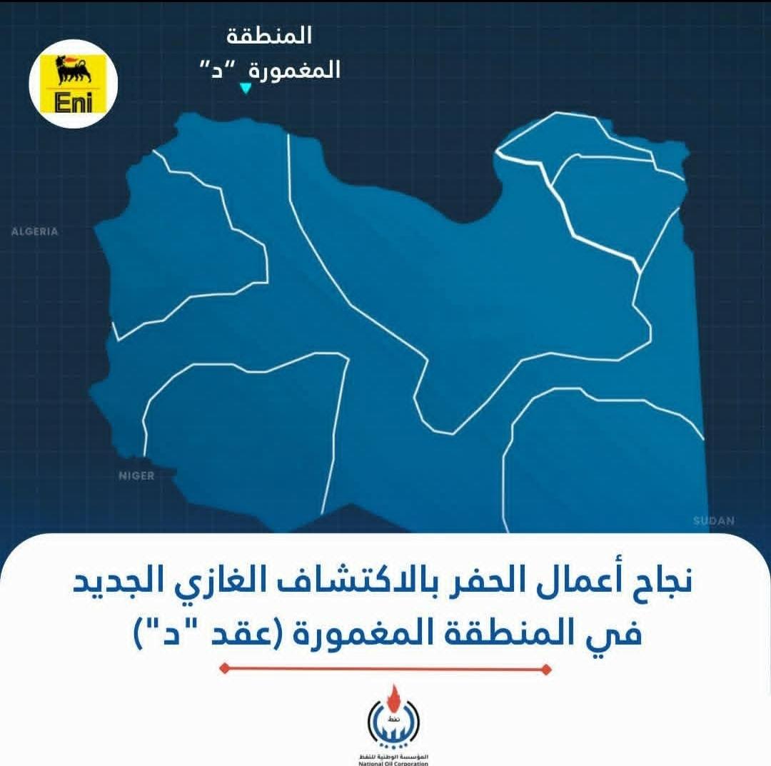 أنجزت المؤسسة الوطنية للنفط وشركة "إيني شمال أفريقيا"، المشغل لمنطقة العقد 4/16، حفر البئر الاستكشافية (ج1-4/16) بنجاح، مما أسفر عن تحقيق اكتشاف غازي جديد في المنطقة المغمورة غرب ليبيا، على مسافة تبعد نحو 95 كيلومتراً من الساحل الليبي واستُكملت أعمال الحفر عند العمق النهائي 10,458 قدماً، حيث أظهرت نتائج اختبارات طبقة خزان "المتلوي" معدلات تدفق موزعة على اختبارين: الأول بمعدل 14 مليون قدم مكعب (بخانق 32/64 بوصة)، والثاني بمعدل 24 مليون قدم مكعب (بخانق 62/64 بوصة) ويعد هذا البئر المحطة الأخيرة ضمن الالتزامات التعاقدية التسعة المقررة لمنطقة التعاقد البحرية "د"، وذلك بموجب الاتفاقية الموقعة في يونيو 2008م