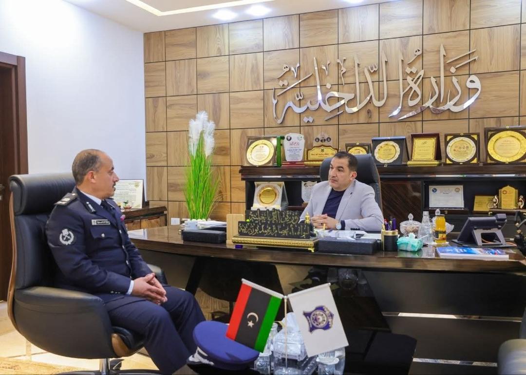 عقد وزير الداخلية اللواء عصام أبوزريبة اجتماعاً مع رئيس جهاز حماية الآداب العامة اللواء "مصطفى عوض بحوية"، لمتابعة سير عمل الجهاز وبحث سبل تطويره وتعزيز انتشاره تناول الاجتماع مناقشة سير العمل في الفروع القائمة للجهاز في كل من المرج والبيضاء وسبها وسبل تطوير العمل الأمني فيه، وأبدى معالي الوزير استعداده لدعم الفروع الحالية، كما وافق معاليه على قبول دفعة جديدة للجهاز، واعتماد مقترح قبول خريجي الجامعات من العنصر النسائي وإدراجهم ضمن منتسبي وزارة الداخلية في ختام الاجتماع، أكد معالي الوزير حرصه على دعم جهاز حماية الآداب العامة وتعزيز انتشاره بما يسهم في رفع كفاءة العمل الأمني، مشدداً على أهمية تطوير الموارد البشرية واستيعاب الكفاءات، خاصة من العنصر النسائي، لدعم مختلف مكونات الوزارة