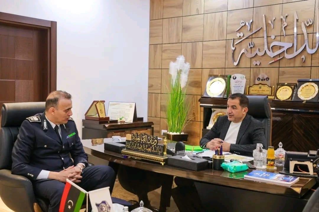 اجتمـع وزير الداخلية اللواء عصام أبوزريبة مع مدير أمن أجدابيـا اللواء.د "أمبارك مصطفى بوحرارة"، في مكتبه بديوان عام الوزارة