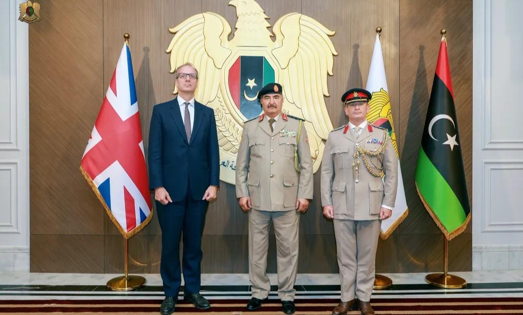 استقبل القائد العام للقوات المسلحة، المشير خليفة حفتر، سفير المملكة المتحدة لدى ليبيا، مارتن رينولدز، والملحق العسكري مات كيتيرر، والوفد المرافق، وذلك في مقر القيادة العامة بمدينة بنغازي