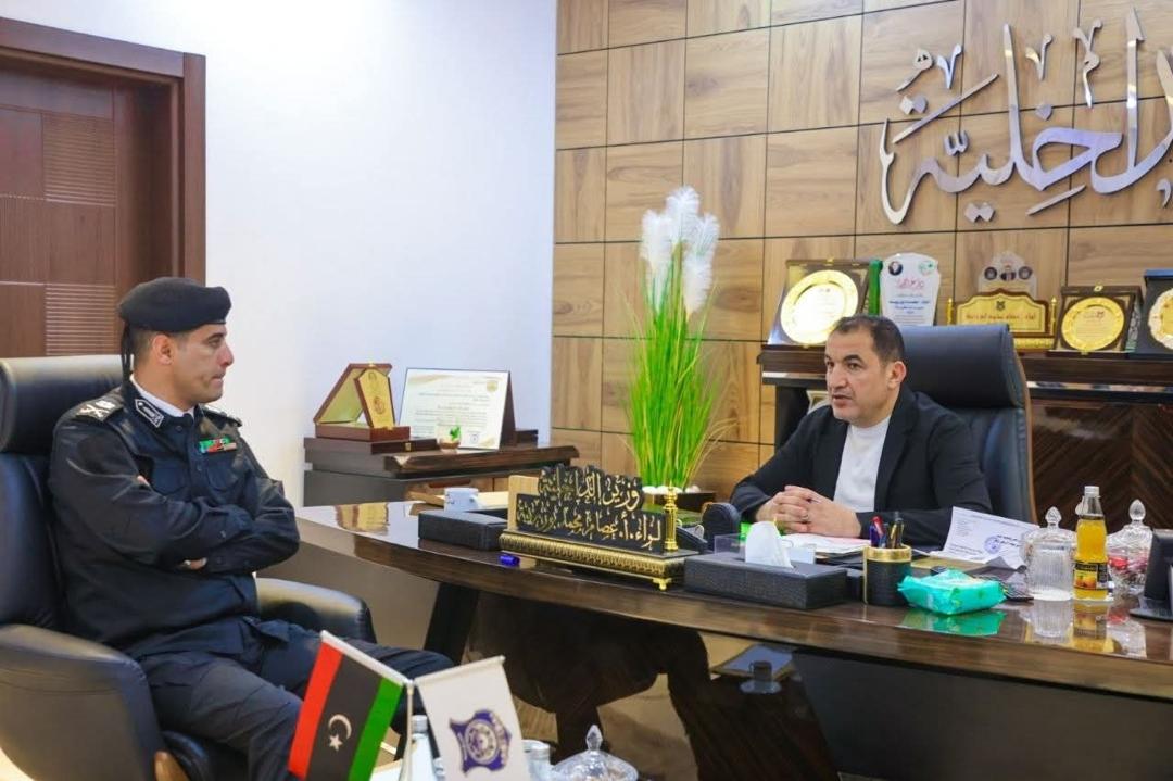 اِجتمـعَ وزير الداخليـة، اللواء عصام أبوزريبة مع مدير أمن الجبل الأخضر، اللواء "وهبي أنور الرخ"، لمتابعة الأوضاع الأمنية في نطاق المديرية وتم خلال الاجتماع بحث الإمكانيات المتاحة للمديرية، إلى جانب استعراض التطورات الأمنية في المناطق الواقعة ضمن نطاق اختصاص المديرية وآليات التعامل مع التحديات القائمة، بهدف إلى تعزيز الاستقرار ورفع كفاءة الأداء الأمني وفق خطة تدريجية في ختام الاجتماع أكد معالي الوزير حرص الوزارة على دعم جميع مكونات الوزارة، وتوفير الإمكانيات اللازمة، مشددًا على أهمية رفع مستوى الجاهزية وتعزيز العمل الأمني بما يحقق الأمن والاستقرار والحفاظ على أمن وسلامة الأهالي داخل نطاق اختصاص المديرية