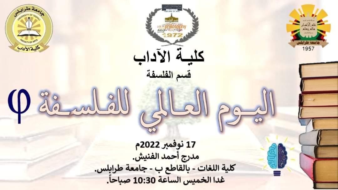 نظم قسم الفلسفة كلية الآداب بجامعة طرابلس اليوم العالمي للفلسفة بحضور السادة اعضاء هيئة التدريس بكلية الآداب و قسم الفلسفة والطلاب ، كذلك السادة المهتمين من اساتذة الجامعة وطلابها