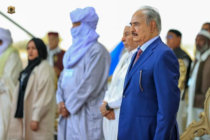 خلال زيارته لمدينة وادي الشاطئ، وسط استقبال شعبي كبير من آهالي المدينة والمناطق المجاورة، وبحضور مجلس مشائخ وأعيان وادي الشاطئ، والمجلس الأعلى لقبائل فزان والبلديات، وممثلين عن قبائل الجبل الغربي، وآهالي المدينة، وآهالي أسر شهداء القوات المُسلحة ألقى القائد العام للقوات الليبية المسلحة المشير أركان حرب خليفة بالقاسم حفتر كلمة جاء فيها