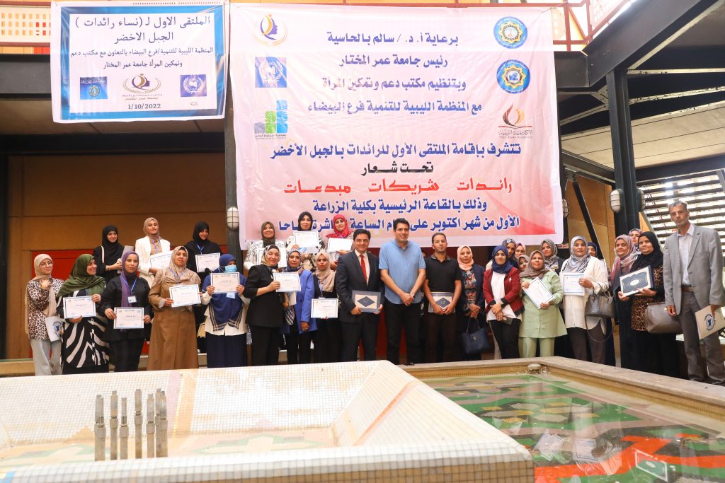 أقيم يوم السبت الموافق 01. 10. 2022م بقاعة الاجتماعات الرئيسة بكلية الزراعة بجامعة عمر المختار الملتقي الأول للنساء الرائدات بالجبل الأخضر تحت شعار " رائدات – شريكات – مبدعات " بالمشاركة مع المنظمة الليبية للتنمية فرع البيضاء