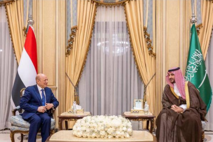 وقال الأمير خالد عبر حسابه على تويتر: بتوجيهات ولي العهد رئيس مجلس الوزراء، التقيت مع رئيس مجلس القيادة الرئاسي اليمني رشاد العليمي، ونقلت له تحيات وتقدير قيادة المملكة لجهود المجلس، وتمنياتها لليمن الشقيق الأمن والاستقرار
