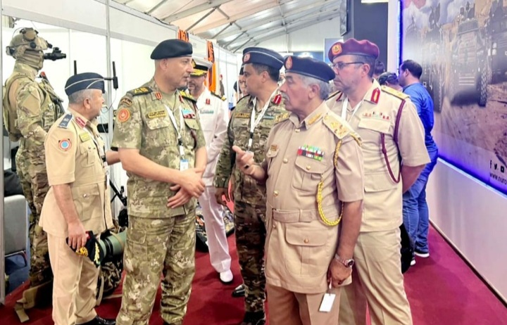 شارك رئيس الأركان العامة الفريق أول عبدالرازق الناظوري، والفريق أول محمد الحداد الوفد المرافق لهما، في فعاليات المعرض الدولي للطيران والدفاع في دورته الثانية، والذي أقيم في تونس، يومي الثلاثاء والأربعاء الماضيين، بدعوة من رئيس أركان جيش الطيران التونسي الفريق محمد الحجّام