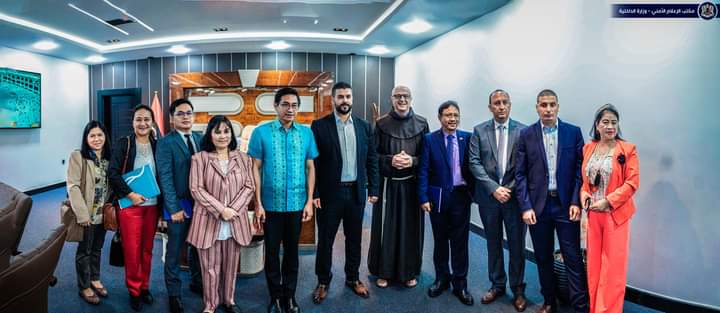 التقى وكيل وزارة الداخلية فرج إقعيم بوفدٌ دبلوماسيٌ فلبّينيٌ، مُتمثّلاً في القائم بأعمال السفير آلان روي غابرسولا، ورئيس الجالية ومنسّق السفارة في بنغازي دورس مي باتاد، والوفد المرافق لهما، وذلك لمُناقشة الأوضاع العامة للجالية الفلبّينية في ليبيا، وتسوية إجراءاتهم الرسمية ومُستنداتهم القانونية أبرزها بطاقة الحصر، حيث أشاد السفير الفلبّيني بجهُود وزارة الداخلية في إستتباب الأمن وتأمين الجاليات والبعثات الأجنبية وتمكينهم من أداء مهامهم على أكمل وجه