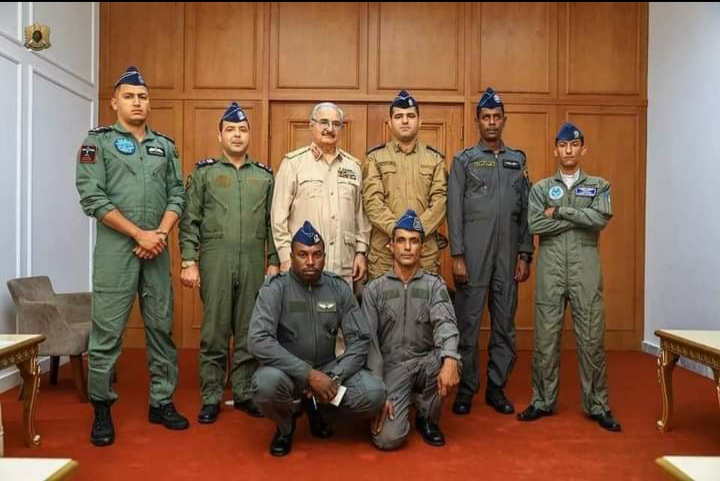 التقى القائد العام للقوات المسلحة الليبية المشير خليفة حفتر، بضباط وطياري فرع الطيران باللواء طارق بن زياد المعزز، لمناقشة العديد من الأمور