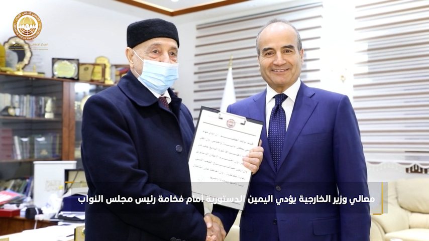أدى وزير الخارجية عبد الحافظ قدور اليمين الدستورية أمام رئيس مجلس النواب المستشار عقيلة صالح بمكتبه في مدينة القبة امس الثلاثاء ليُباشر عمله اعتباراً من يوم الثلاثاء