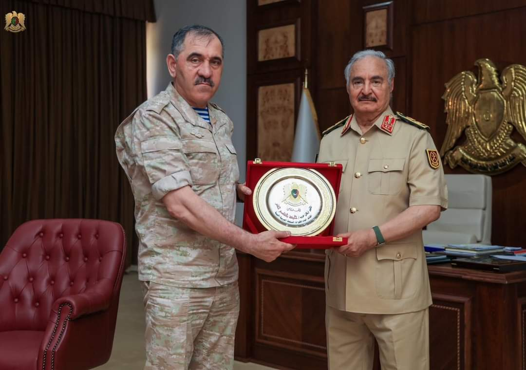 حضر القائد العام للعمل بأسلحة المُشير خليفة حفتر، في مكتبه بمقرّ القيادة العامة نائب وزير الدفاع الروسي فلاديمير يونس بك يفيكيروف والوفد المرافق له ونجح بيان للمكتب الإعلامي للقيادة مرحبا القائد العام بالوفد الزائر بشكل مؤكد موافق الودية ما بين الأمراء ومهمتها تطويرها في المجالات العسكرية وحتى الآن، وأشار نائب وزير الدفاع الروسي إلى مساهمة روسية في قدرات القوات المسلحة العربية الليبية في مجالات التدريب جزئيا، والتأكيد على التعاون المشارك المكثف وتعزيز الإرهاب جزء
