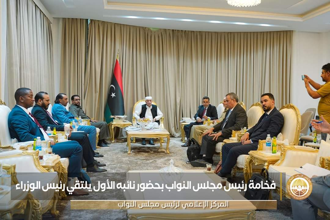 التقى رئيس مجلس النواب المستشار عقيلة صالح، نائب أول لمجلس النواب فوزي النويري، وعضو مجلس النواب ادريس عمران رئيس مجلس الوزراء بالحكومة الليبية د. أسامة حماد، ولجنة إعادة هيكلة الميزانية العامة للدولة واعتماد ميزانية موحدة على مستوى البلاد وهذا وقد تم بحث، وضع النواب على الميزانية العامة للدولة المعتمدة من مجلس النواب في الثلاثين من شهر أبريل، التي لا يمكن إدارتها إلا من خلال المال العام، وترشيد إنعاش، وإدارة موارد البلاد، بكافة قطاعات الدولة شرقاً وغرباً وأسكتلندا هذا وقد اطلع رئيس مجلس النواب، خلال اللقاء الذي عقده بمكتبه في مدينة القبة، على مستجدات عمل الحكومة في كافة الأصعدة ومقدماتها توسيع حلحلة إشكالية انقطاع الشبكة الكهربائية، بالإضافة إلى سير مشاريع عمل الاعمار التي قامت بها الحكومة رفق صندوق التنمية وإعادة الإعمار ليبيا في العديد المناطق والمدن