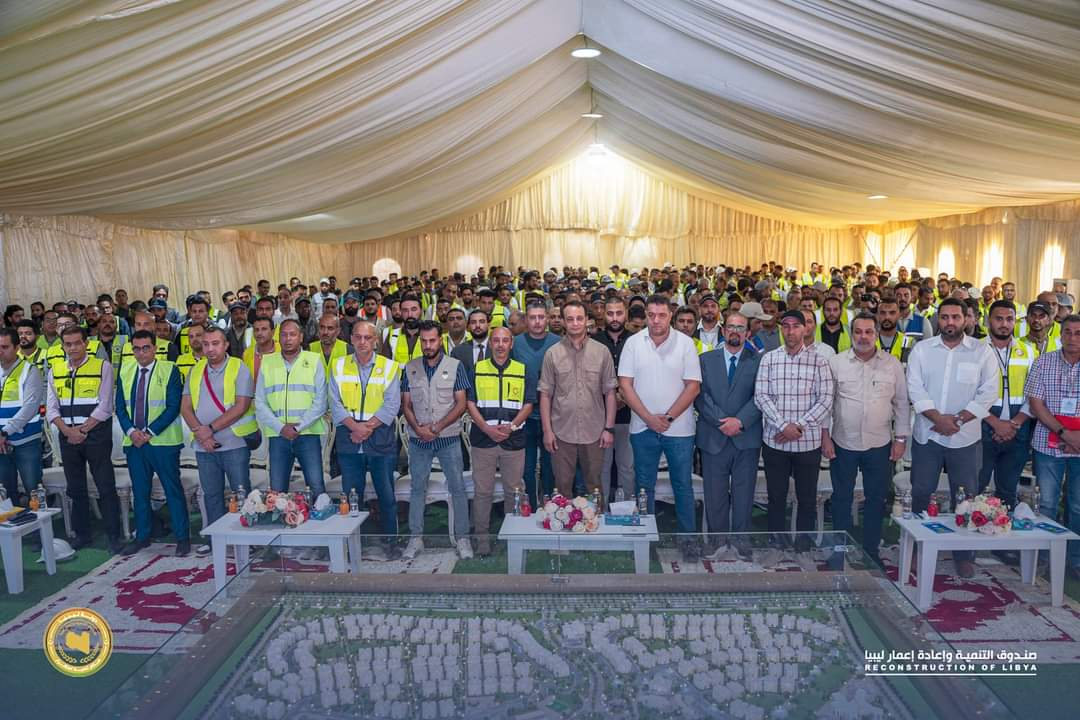 اجتمع المدير العام لصندوق التنمية وإعادة إعمار ليبيا المهندس بالقاسم حفتر بجميع الشركات العاملة في مواقع مشاريع الإعمار داخل مدينة درنة وذلك للإطلاع على نسب الإنجاز ومتابعة خطوات التنفيذ ومراقبة جودة العمل بصورة عامة وأثنى مدير عام الصندوق في ختام هذا الاجتماع على الجهود المبذولة من الشركات المُشاركة في إعادة بناء وإعمار درنة لكونهم يواصلون الليل بالنهار ويعملون بمسؤولية كبيرة حتى تُسلم المشاريع في موعدها المُحدد