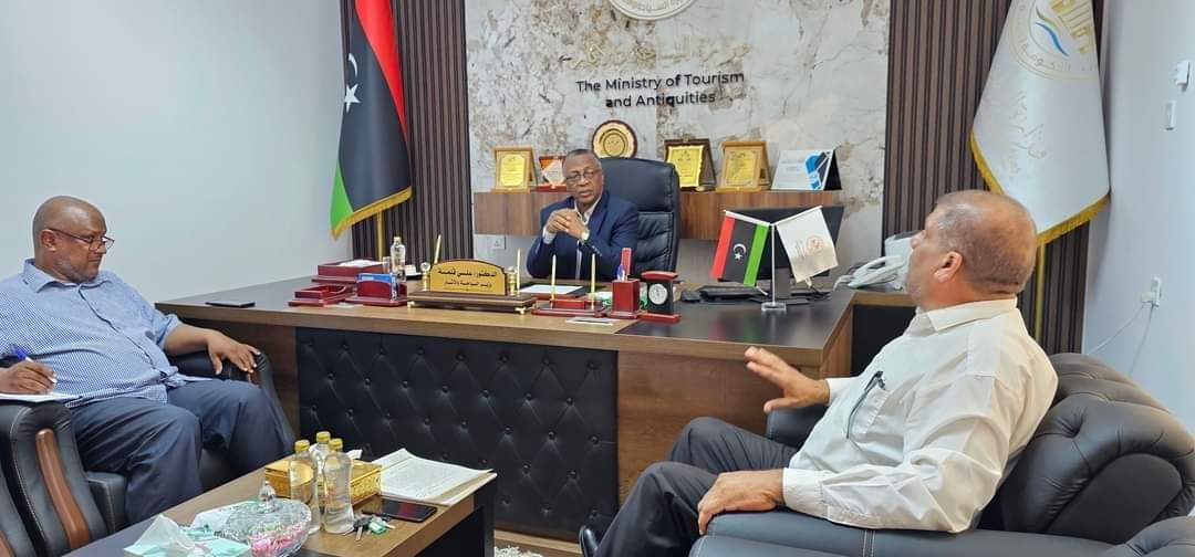 ناقش وزير السياحة والآثار بالحكومة الليبية الدكتور علي قلم، مع مدير عام الشؤون الادارية والمالية للوزارة الأستاذ علي سلطان، والمراقب المالي للوزارة الأستاذ يوسف ابراهيم، سير عمل الوزارة أثناء فترة تواجد الوزير في المملكة العربية السعودية للقيام بمناسك الحج كما بحث ملف الميزانية الحالي لعام 2024 وسبل القضاء عليه نصفه، وعكف على المخاتمة والالتزام بالقائمة بديوان الوزارة واختتم الاجتماع بتحديد مذكرة لمجلس الوزراء للمطالبة بصرف مخصصات مالية لديوان الوزارة والجهات التابعة لها، للمساهمة في إنجاز المهام المتوقفة وحل المخاتمة العالقة