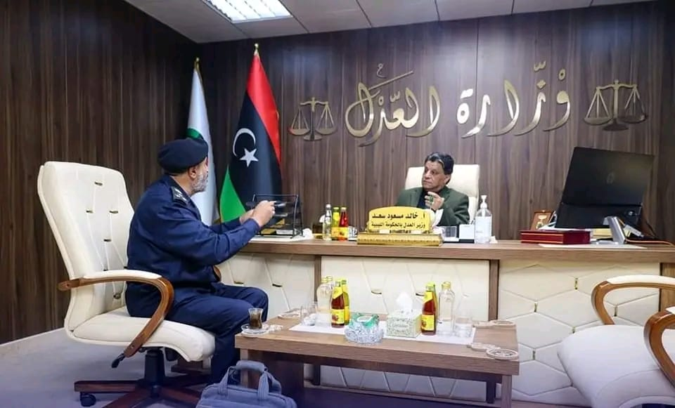 في خطوة تؤكد حرص وزارة العدل على دعم كافة الأجهزة القضائية استقبل وزير العدل المستشار خالد مسعود المدير بمكتبه بمدينة بنغازي يوم الأربعاء رئيس مكتب الشرطة القضائية الساحل