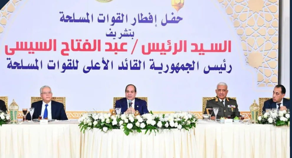 وخلال حفل الإفطار السنوي الذي أقامته القوات المسلحة المصرية، أشار السيسي إلى الظروف الصعبة التي يمر بها العالم ومنطقة الشرق الأوسط