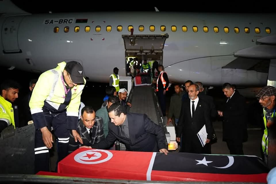 وتولت إدارة المراسم بوزارة الخارجية والتعاون الدولي نقل الجثامين إلى تونس الشقيقة مساء يوم الأحد 23 مارس 2025، وذلك بحضور القنصل العام المكلف للجمهورية التونسية في بنغازي، ومدير وأعضاء مكتب المراسم بوزارة الخارجية الليبية