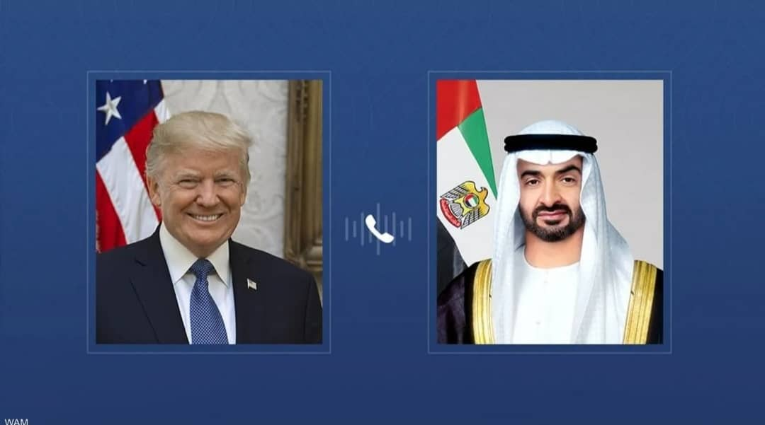 بحث رئيس الإمارات الشيخ محمد بن زايد آل نهيان والرئيسي الأميركي دونالد ترامب خلال اتصال هاتفي – العلاقات الاستراتيجية التي تجمع البلدين والعمل على تعزيزها في جميع المجالات بما يخدم مصالحهما المشتركة، وذلك في إطار الشراكة الممتدة التي تجمع البلدين كما تطرق الاتصال إلى نتائج الزيارة الرسمية الناجحة التي قام بها الشيخ طحنون بن زايد آل نهيان نائب حاكم إمارة أبوظبي مستشار الأمن الوطني إلى الولايات المتحدة مؤخراً والتي شهدت إعلان اتفاقات وشراكات مهمة بين البلدين خاصة في مجالات الذكاء الاصطناعي