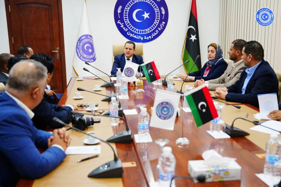 استقبل وزير الخارجية والتعاون الدولي عبد الهادي الحويج، بمقر الوزارة في مدينة بنغازي؛ رئيس وأعضاء الأمانة العامة للاتّحاد المغاربيّ الصحفيين، بحضور ممثل إدارة الشؤون الإفريقية بالقيادة العامة للقوات المسلحة ‏وخلال الاجتماع؛ أكد الوزير أن احتضان مدينة بنغازي للمؤتمر الدولي الأول للاتحاد المغاربيّ للصحفيين والذي شهد مشاركة واسعة؛ دليلٌ على أن المدينة أصبحت مقصدًا لأبرز الفعاليات والمؤتمرات الإقليمية والدولية، وذلك لما أصبحت تنعم به المدينة من مستويات رفيعة في الأمن والاستقرار ودعا وزير الخارجية إلى ضرورة تفعيل مكتب الاتحاد في مدينة بنغازي، كما شدد على أن الحكومة الليبية برئاسة الدكتور أسامة حماد، هي الحكومة الشرعية والمنبثقة من مجلس النواب، وأن وزارة الخارجية هي البوابة الرسمية في الدولة؛ للتتواصل مع المنظمات والهيئات الدولية