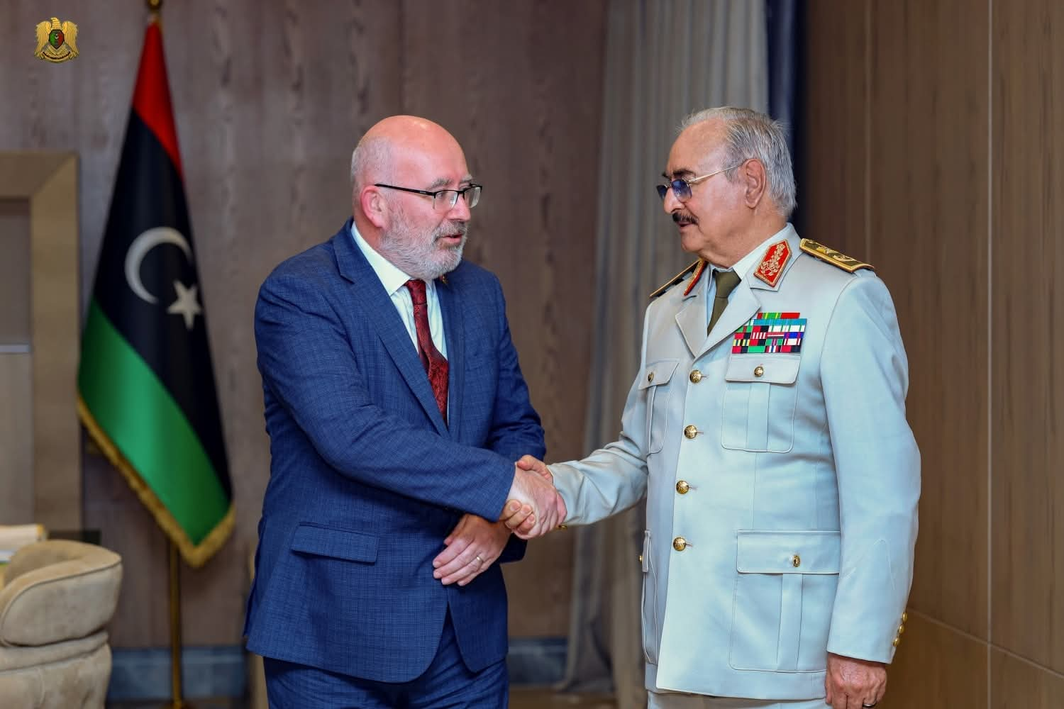 استقبل القائد العام للقوات المسلحة المشير أركان حرب خليفة بالقاسم حفتر، سفير المملكة المتحدة لدى ليبيا مارتن أندرو، والوفد المرافق له، وذلك بمقر القيادة العامة في الرجمة