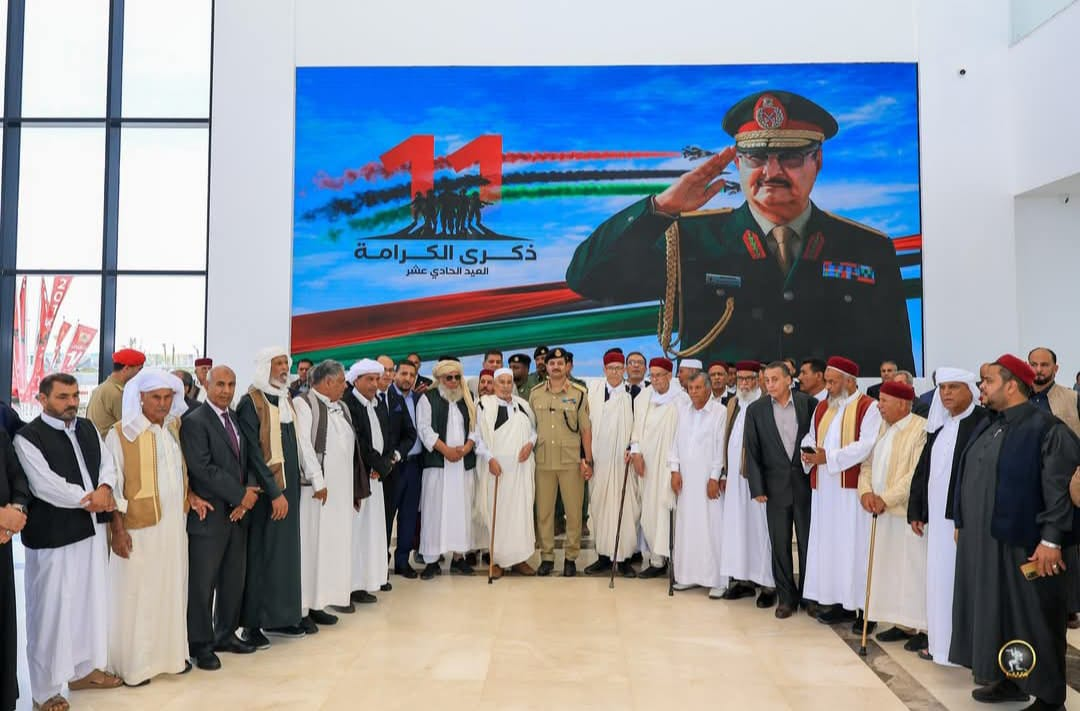 رئيس الأركان العامة للقوات المسلحة، الفريق أول ركن خالد حفتر، يستقبل في مدينة المشير خليفة حفتر العسكرية وفدًا من مشايخ وأعيان قبيلة المغاربة