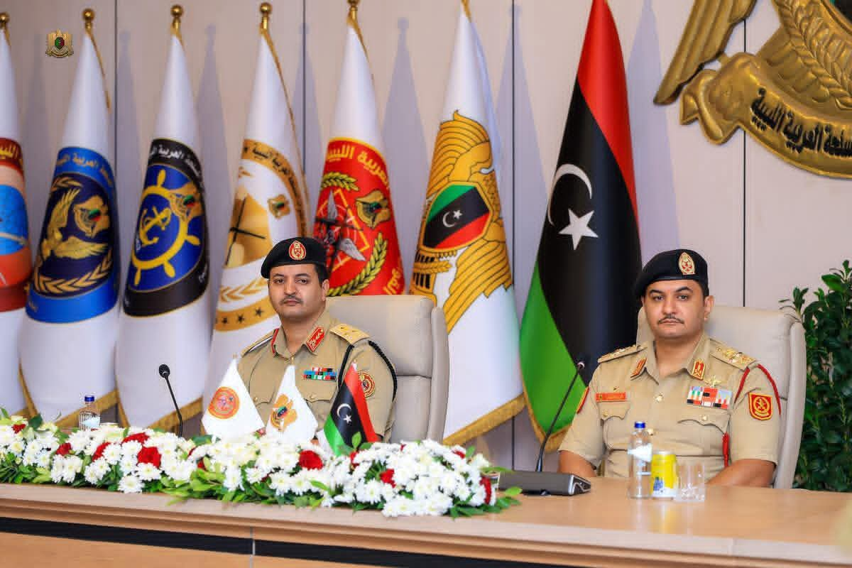 عُقد في مدينة المشير خليفة حفتر العسكرية اجتماع موسع ضم نائب القائد العام للقوات المسلحة، الفريق أول ركن صدام خليفة، ورئيس الأركان العامة، الفريق أول ركن خالد خليفة، بحضور رؤساء الأركان النوعية وأمراء الإدارات والهيئات التابعة للقوات المسلحة وتناول الاجتماع سير العمل داخل مختلف رئاسات وإدارات القوات المسلحة، إلى جانب مناقشة خطط التطوير والتحديث الشاملة، التي تركز على برامج التدريب والتأهيل، بهدف رفع الكفاءة المهنية وتعزيز الجاهزية القتالية للقوات المسلحة