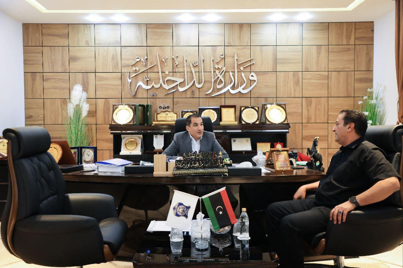 ناقش وزير الداخلية اللواء عصام أبو زريبة، مع رئيس جهاز البحث الجنائي اللواء أحمد الشامخ، أداء الجهاز وفروعه وجهودها الأمنية خلال الفترة الماضية في مختلف المدن الليبية