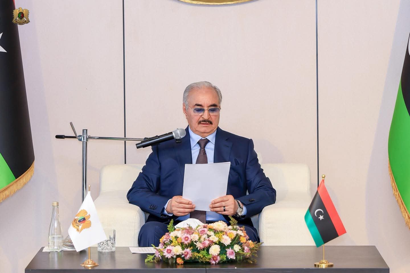ألقى القائد العام المشير خليفة حفتر كلمة خلال لقائه قبائل مناطق الساحل الغربي، رحّب فيها بالحضور، مؤكداً وحدة الليبيين وتلاحمهم في مختلف الظروف