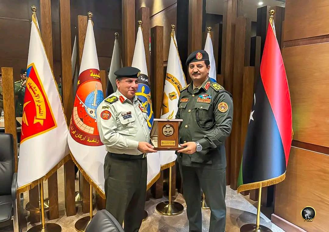 استقبل رئيس الأركان العامة للقوات المسلحة، الفريق أول ركن خالد حفتر، وفدا عسكريا رفيع المستوى من المملكة الأردنية الهاشمية، برئاسة مساعد رئيس هيئة الأركان العامة للعمليات والتدريب عميد ركن نجي عبدالجليل المناصير، وذلك في إطار التعاون العسكري المتواصل بين البلدين وبحث الجانبان خلال اللقاء آفاق تطوير التعاون الثنائي في مجالات التدريب العسكري وتبادل الخبرات الميدانية والفنية، كما أكد رئيس الأركان العامة أهمية تعزيز الشراكة العسكرية بين البلدين الشقيقين، مشددا على ضرورة استمرار العمل المشترك وتبادل الزيارات والبرامج التدريبية بما يحقق المصالح المشتركة، لضمان الأمن والاستقرار في المنطقة